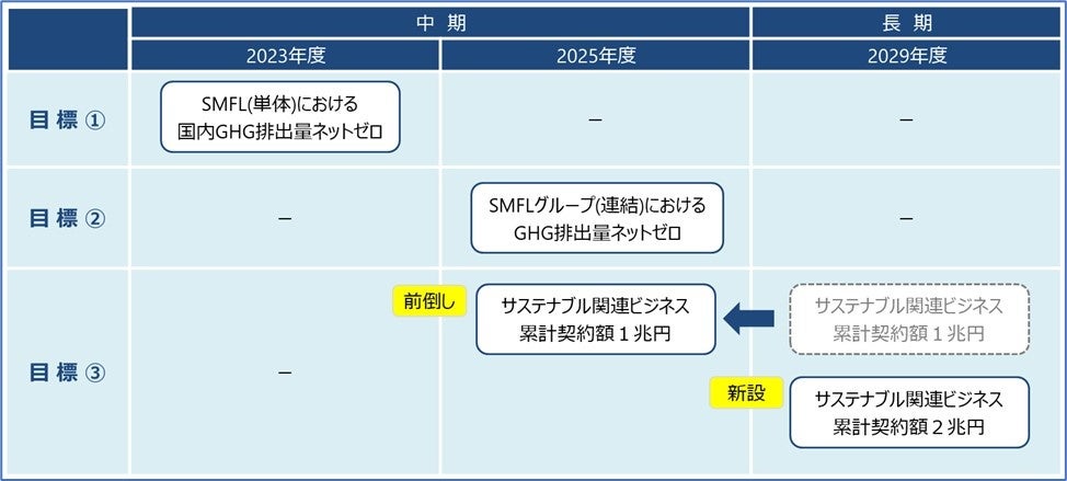 SMFLは、2022年4月、以下の3つの中長期環境目標を設定し、達成に向けて取り組んでまいりました。