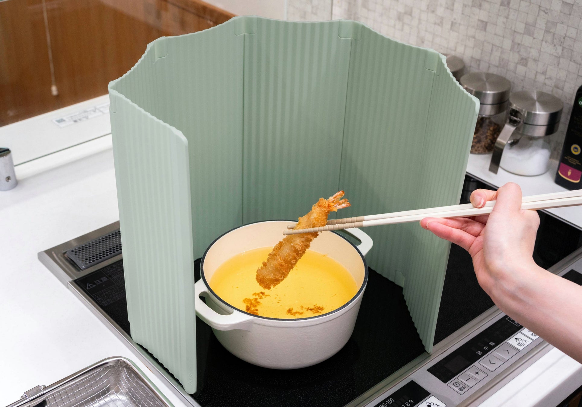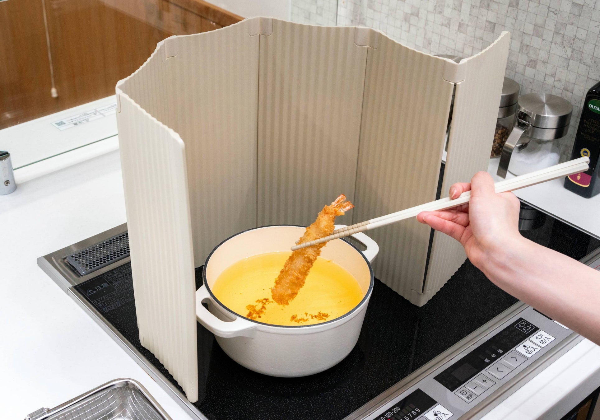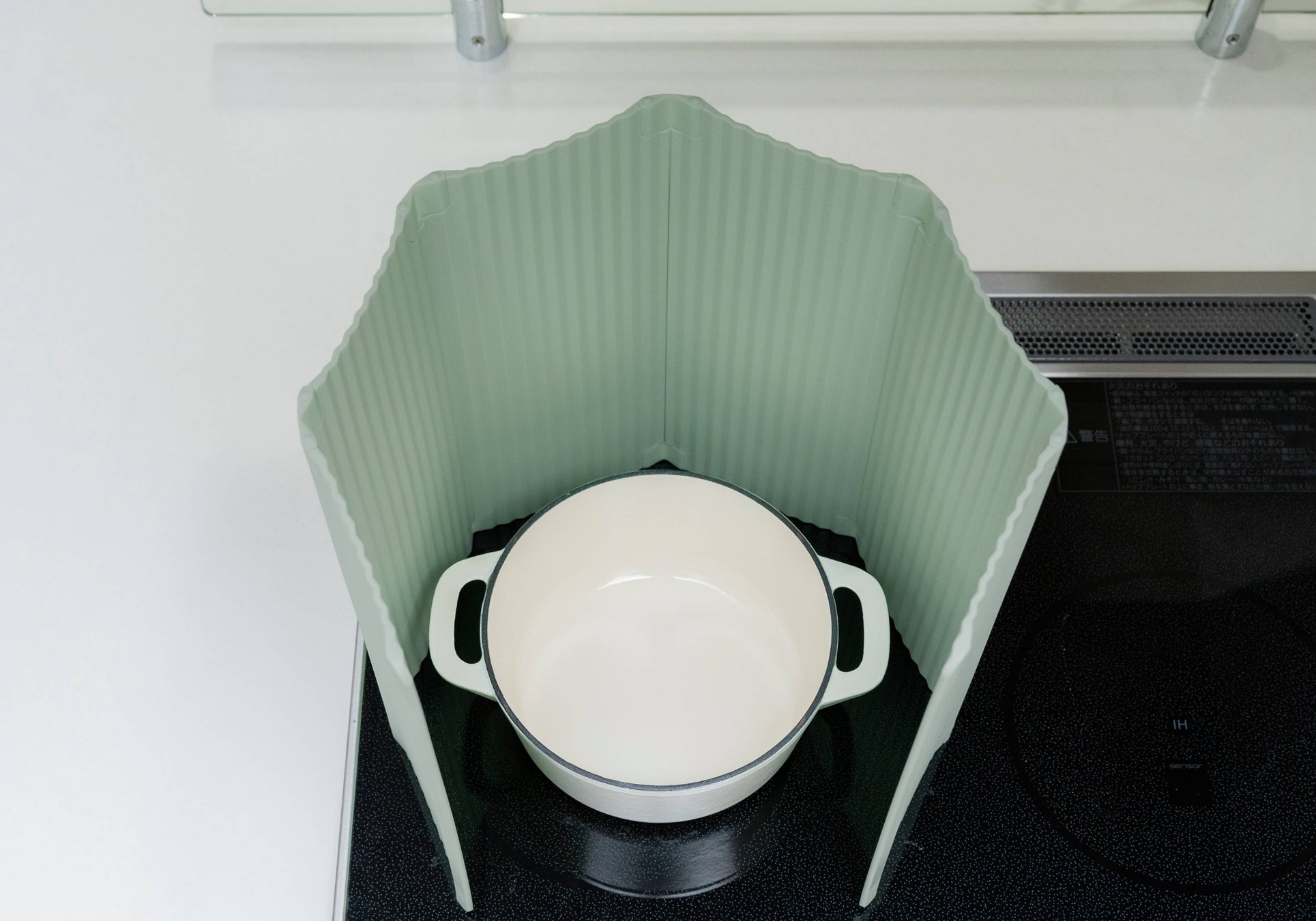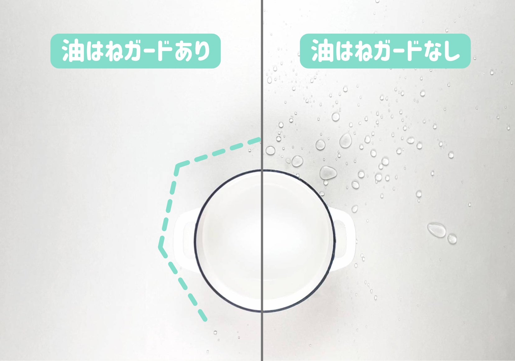 お鍋の形に合わせた自由な囲み方で油跳ねをしっかりガード