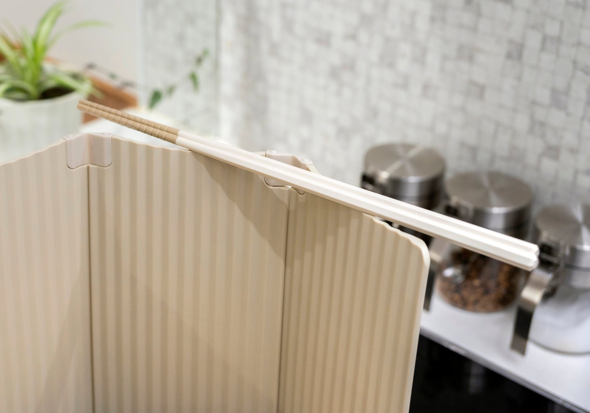 ストレスなく扱いやすい樹脂製を採用した『すっきり暮らす油はねガード』