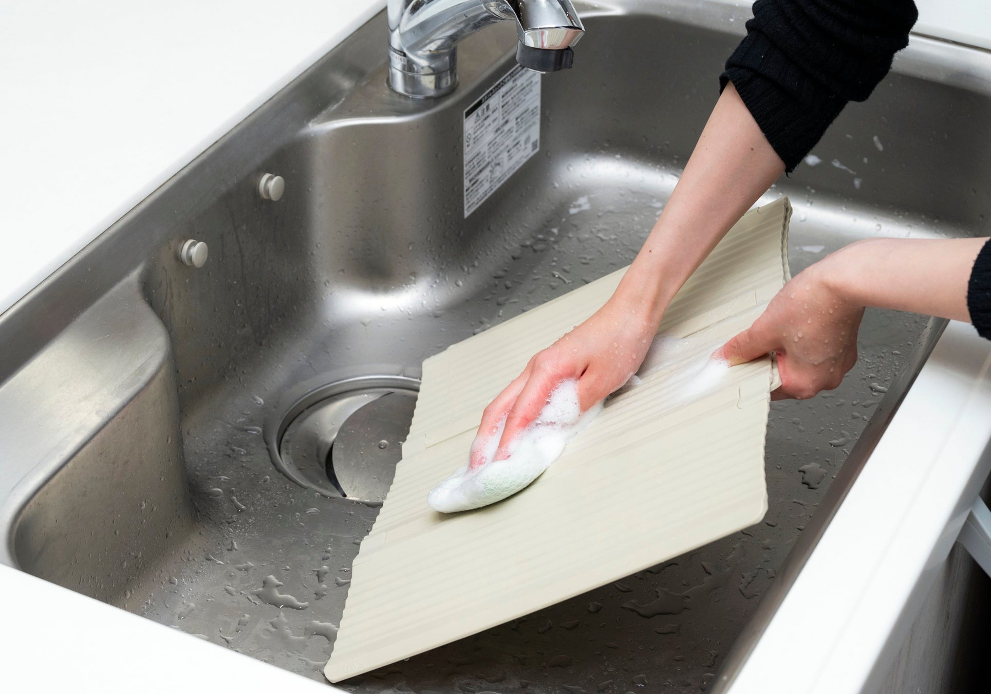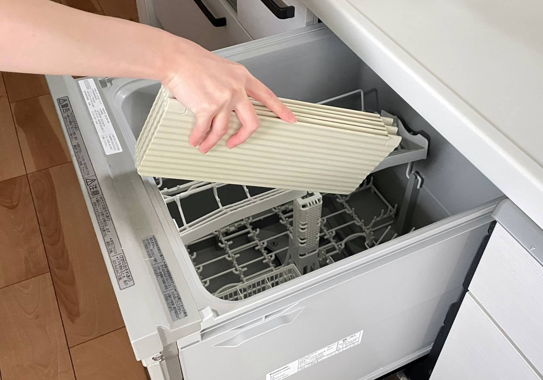 使用後は食洗機で洗えてお手入れ簡単。薄型なので、食器と一緒に入れられ食洗機内でも場所を取りません。食洗機の無いご家庭でも、樹脂製のためシンクを傷付けにくく、コンパクトに折り畳むことができるため手洗いもしやすいです。
