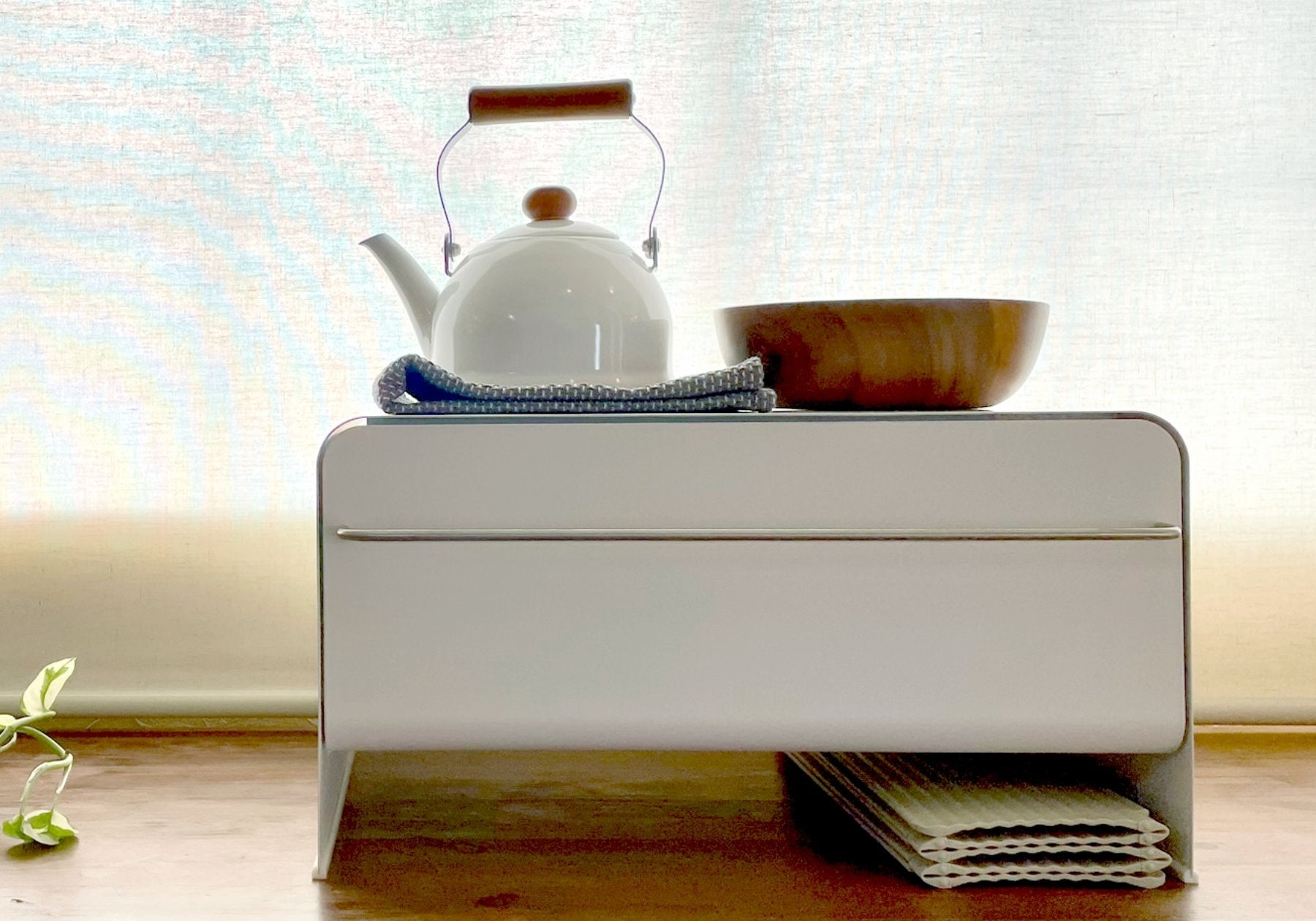 “すっきり暮らす”シリーズから発売する当製品。このシリーズの魅力の一つ、「収納しやすい」を意識し商品開発をしています。引き出しや隙間に立て掛けられる薄型で、収納場所に困りません。