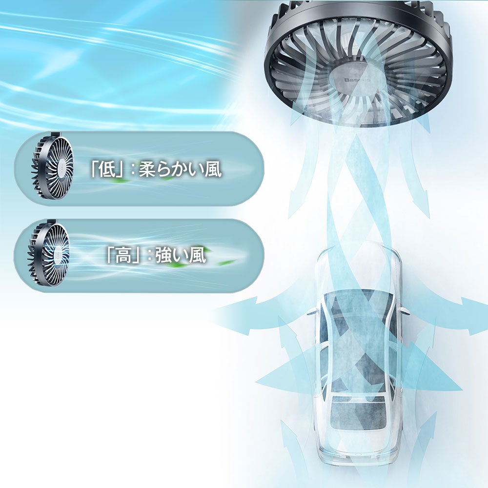 7枚羽で大風量なのに静音性に優れている!さらに冷房の効果を大幅アップ!車内温度が蒸し暑い時におススメアイテムです。