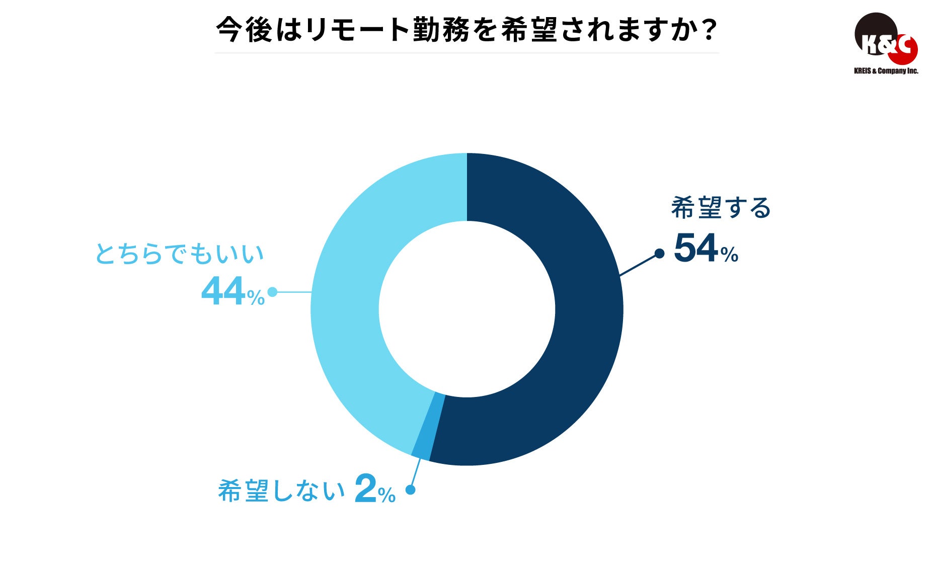 これからの働き方でリモートワークを希望する割合は54%と高水準を維持