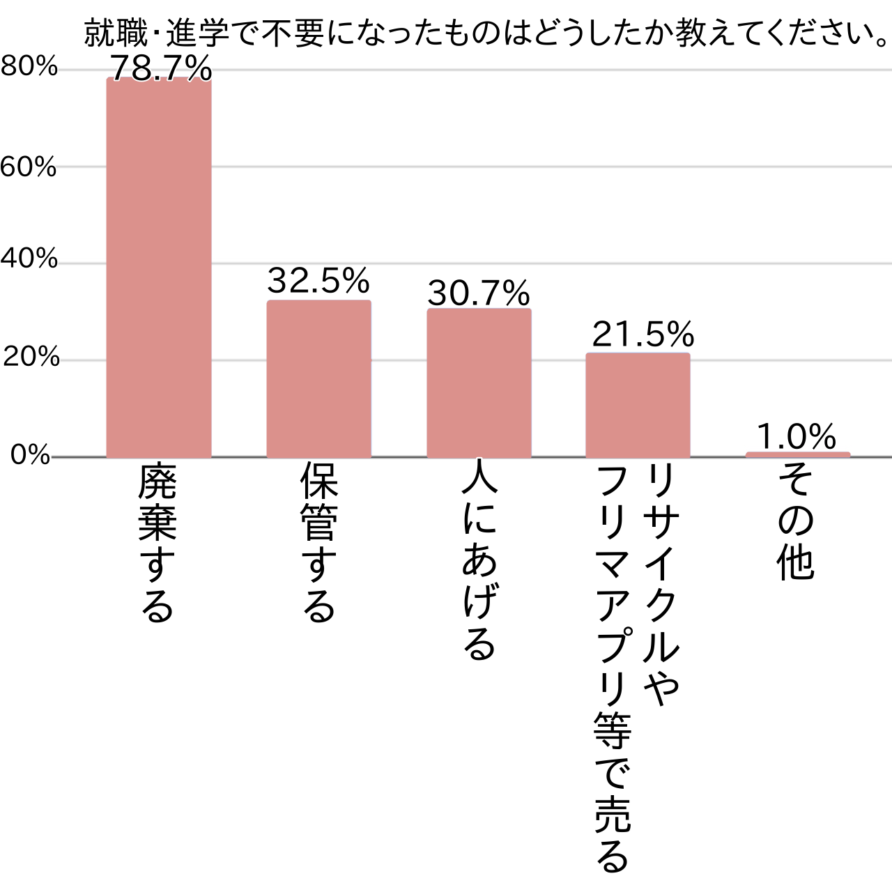 アンケートでは次に、進学・就職により不要になったものをどう対処したかを尋ねてみました。