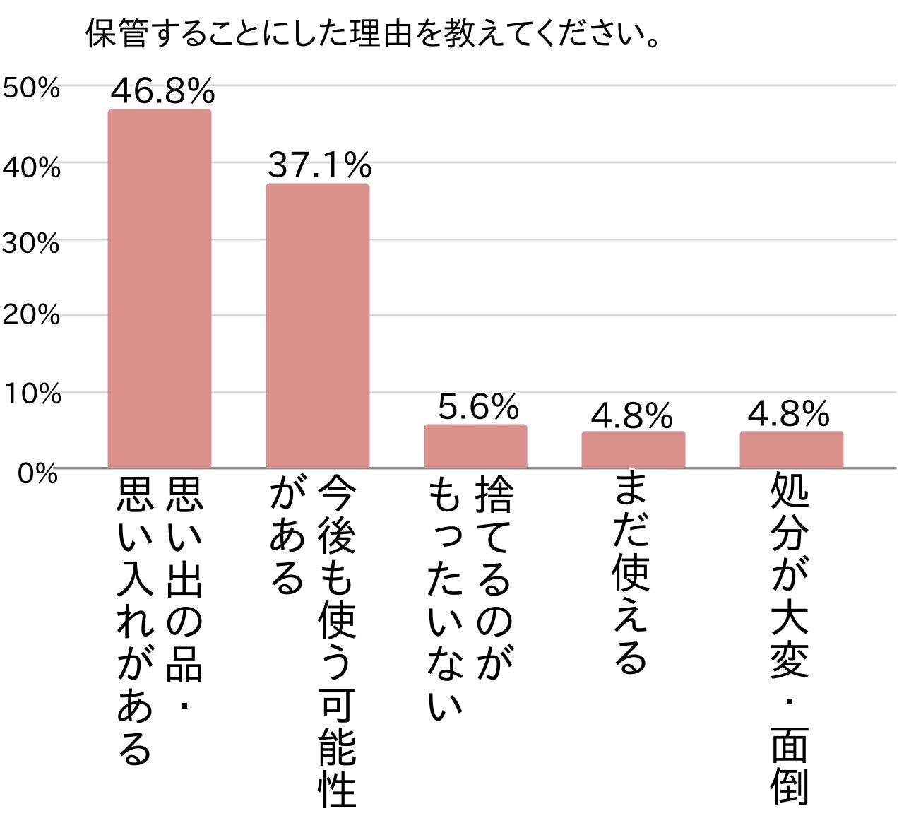 ここからは「保管する」を選んだ方の状況に注目して掘り下げていきましょう。進学・就職で不要になったものを保管することにした理由を尋ねてみました。