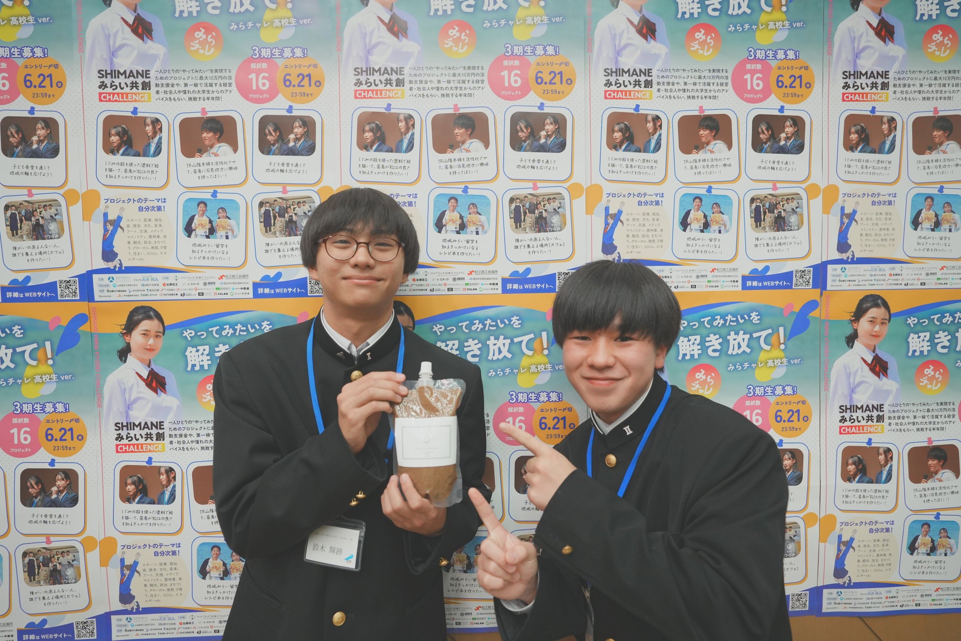 島根県の未来を創る若者の挑戦を後押しし、「主体的に課題を見つけ、さまざまな他者と協働しながら、答えのない課題にも粘り強く向かっていく力」を育み、島根の未来を創るリーダーの育成を目的として、2022年度より活動をスタートした「しまね未来共創チャレンジ事業」(=通称みらチャレ)。本事業では、島根県内の高校生たちが身近で気になる社会課題やテーマに対し「やってみたいプロジェクト」として、その活動に掛かる支援金最大10万円の支援をするほか、経営者・専門家からのアドバイス、社会人や大学生からのサポートを受けながら、半年間の中でアクションを繰り返し、形にしていくチャレンジを官民一体となって支援しています。
