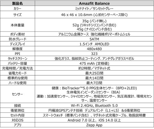 公式オンラインストア:https://www.amazfit.jp/products/amazfit-balance