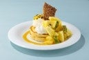 パイナップルと濃厚なレアチーズに、甘酸っぱいパッションフルーツソースがアクセントの爽やかなパンケーキ。