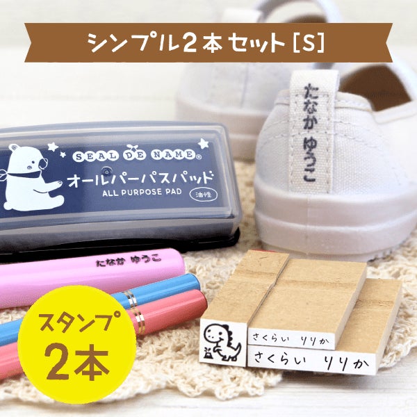 ■セット内容:お名前スタンプ2本、ぷちスタンプ1本、オールパーパスパッド1個