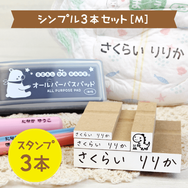■セット内容:お名前スタンプ3本、ぷちスタンプ1本、オールパーパスパッド1個