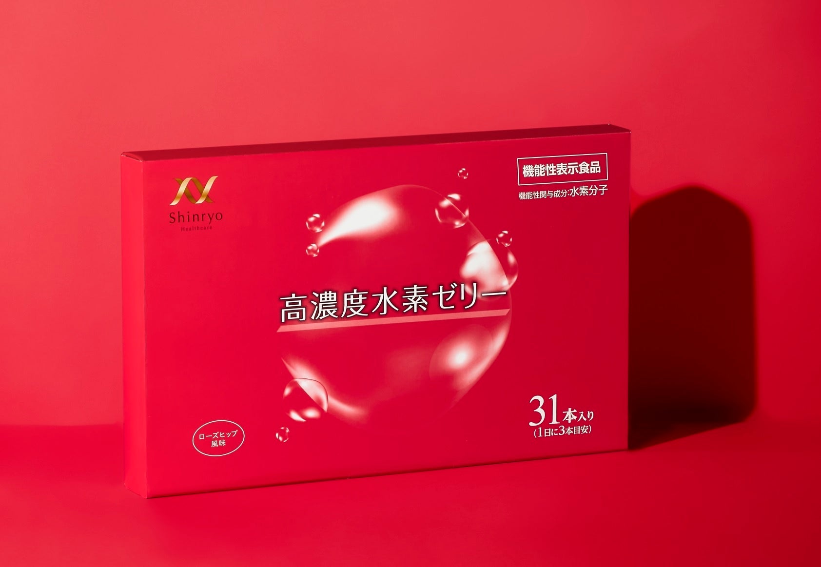 「高濃度水素ゼリー」は、Shinryo Healthcareブランドのもと、三菱ケミカルグループの新菱が製造・販売する、水素サプリとして日本初(*1)の機能性表示食品です。⽔素分⼦を機能性関与成分として含んでおり、⽔素分⼦にはストレスを抱えている⼥性の⽅の睡眠の質(睡眠時間延⻑感)を⾼める機能が報告されています。新菱の特許技術で⽔素⽔の約100倍(*2)の濃度で⽔素を閉じ込めています。