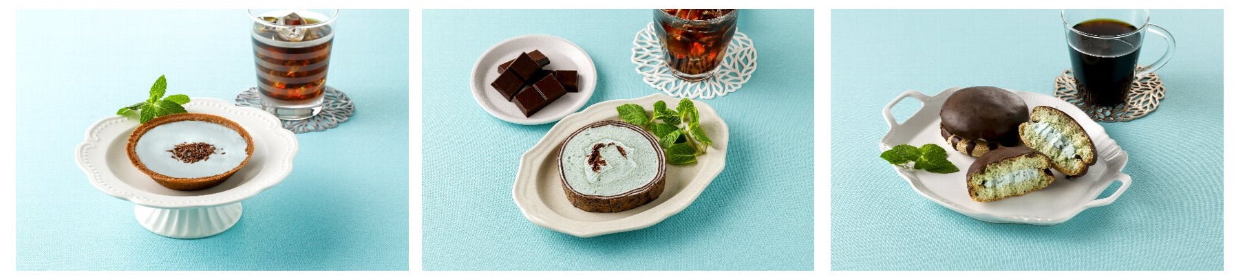 赤城乳業の『チョコミント』は、清涼感が特徴のペパーミントのエキスを配合したスッキリ爽快なミントと、チョコの風味だけではなく、食感もしっかり楽しめるパリパリのチョコが特徴のロングセラー商品です。ご好評につき2年連続のコラボとなる今年は、そんな『チョコミント』の味わいをイメージしたワンハンドスイーツを3品ご用意いたしました。記録的な猛暑が続く中、少しでも暑さを癒すスイーツとしてチョコミント好きの方に楽しんでいただきたいです。