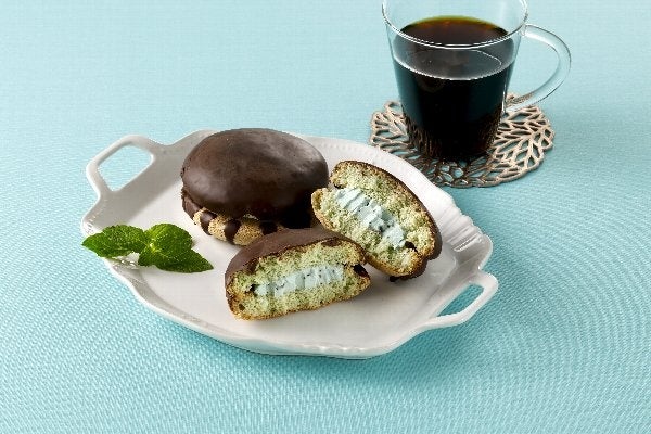 【商品特長】チョコフレーク入りミントクリームをふんわり食感のスポンジでサンドし、パキッと歯ごたえのあるチョココーチングで仕上げました。『チョコミント』を再現した期間限定の個食サイズのサンドケーキです。