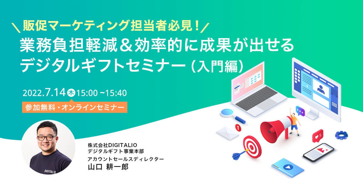 【7/14(木)開催!無料ウェビナー】販促・マーケティングご担当者必見!業務負担軽減&効率的に成果が出せるデジタルギフトセミナー(入門編)