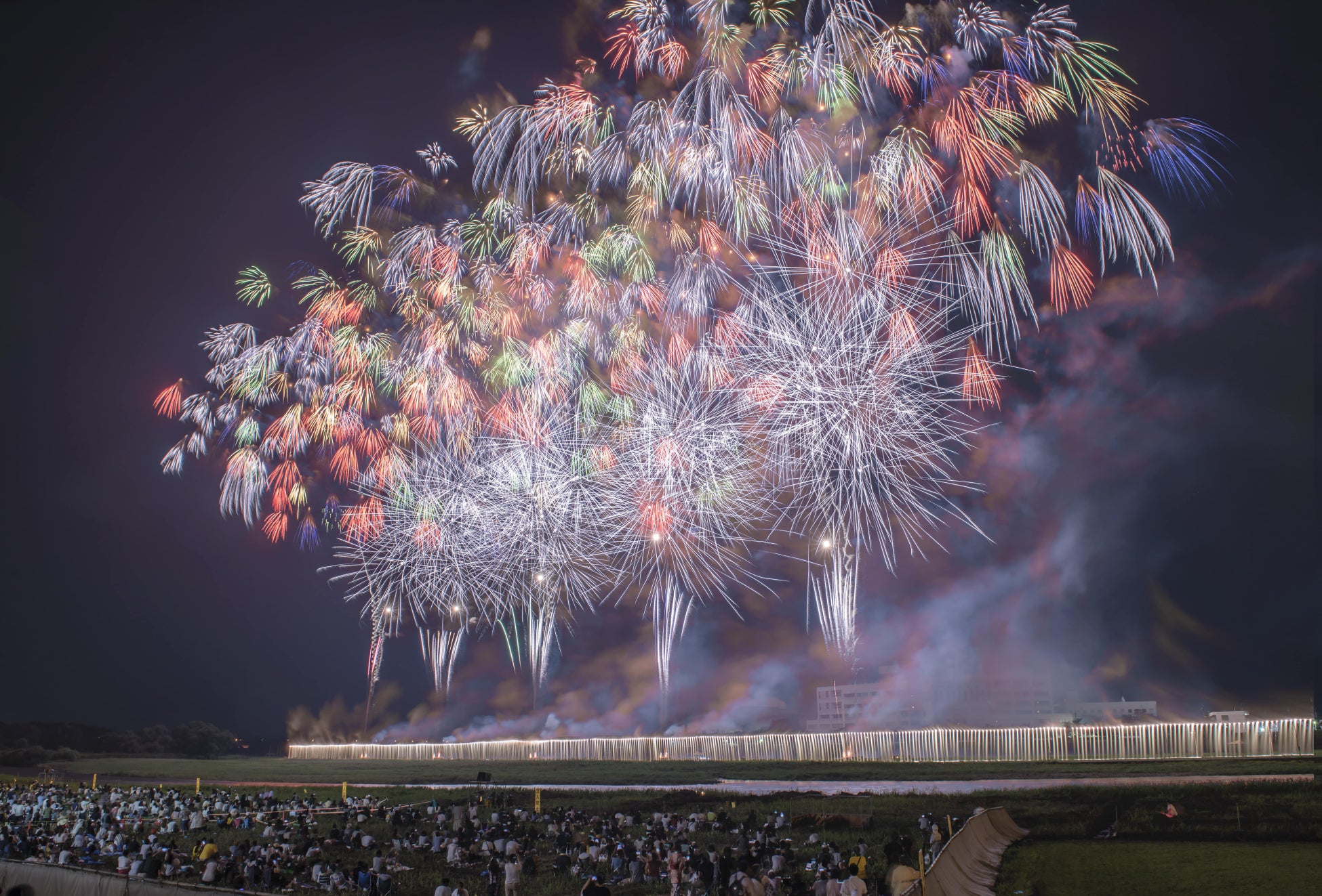 「小山の花火」は、1950年より引き継がれてきた長い歴史と伝統を誇るイベントの一つで、清流 思川を舞台にした関東最大級の花火大会です。華やかなスターマインをはじめ、大迫力のナイアガラ瀑布、尺玉の連続打上げなど約2万発の多彩な花火が夜空を彩ります。