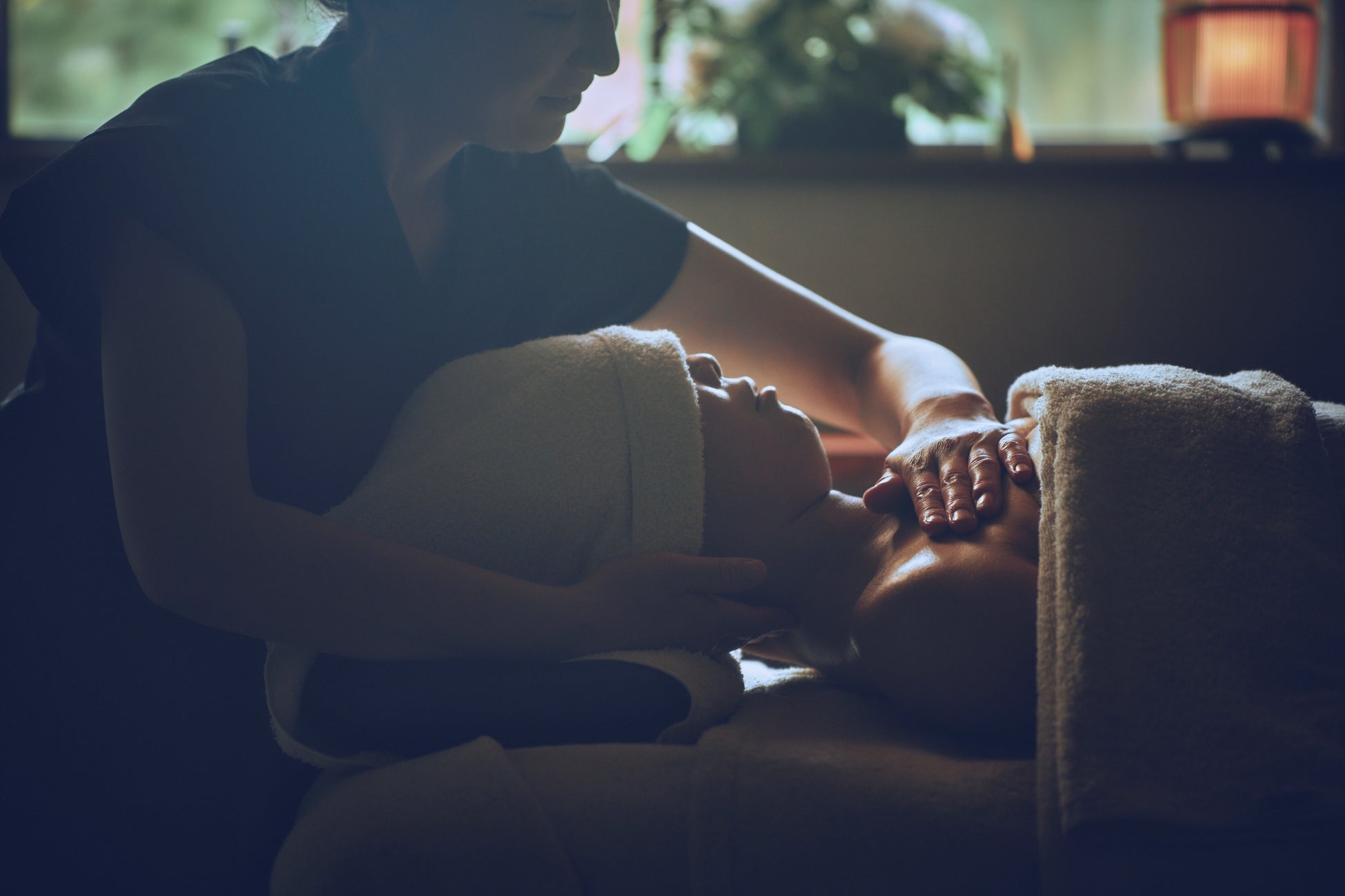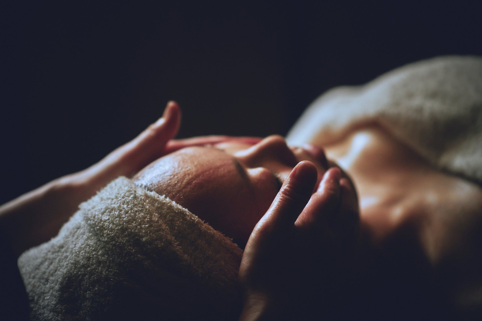 セラピストがオールハンドでフェイシャルのドレナージュを行い、お顔の緊張を和らげます。
