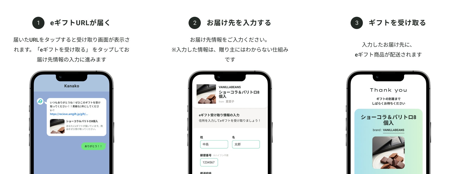 eギフトURLから住所を入力いただくだけで対象商品が届きます