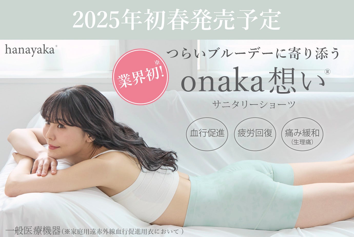 「onaka想い®」サニタリーショーツは、セーレンのフェムテックブランド「hanayaka®」より2025年春に発売予定です。