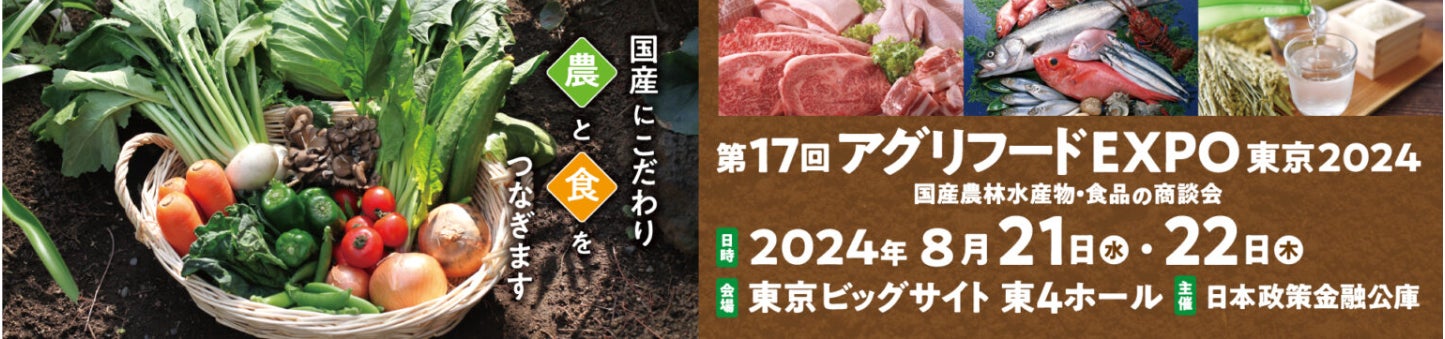 日本政策金融公庫(略称:日本公庫)は、8月21日(水)、22日(木)の2日間、国産農林水産物・食品を対象とした展示商談会、第17回「アグリフードEXPO東京 2024」を開催します。