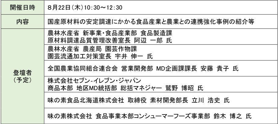 ①食品産業における国産原材料の利用促進と、産地連携の取組みに関する講演