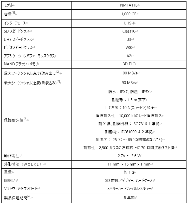 microSDXC UHS-Iメモリーカード GシリーズNM1A1TB 製品情報 Nextorage WEBサイト