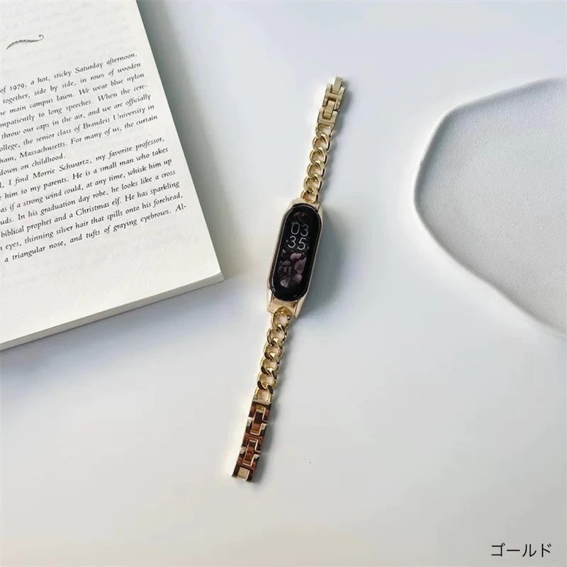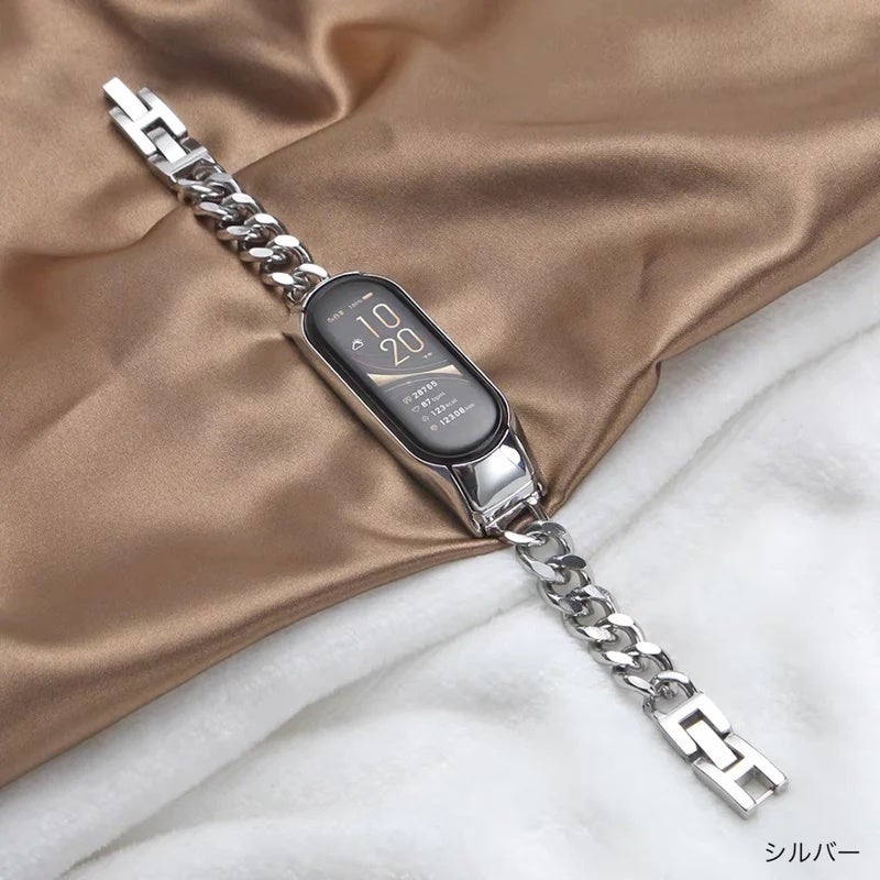 手軽さが魅力のフレーム一体型シャオミスマートウォッチ用バンドです。シンプルなチェーンは使う人を選びません。金属の光沢を生かしたきれいめのデザインはオフィスシーンにもぴったりです。