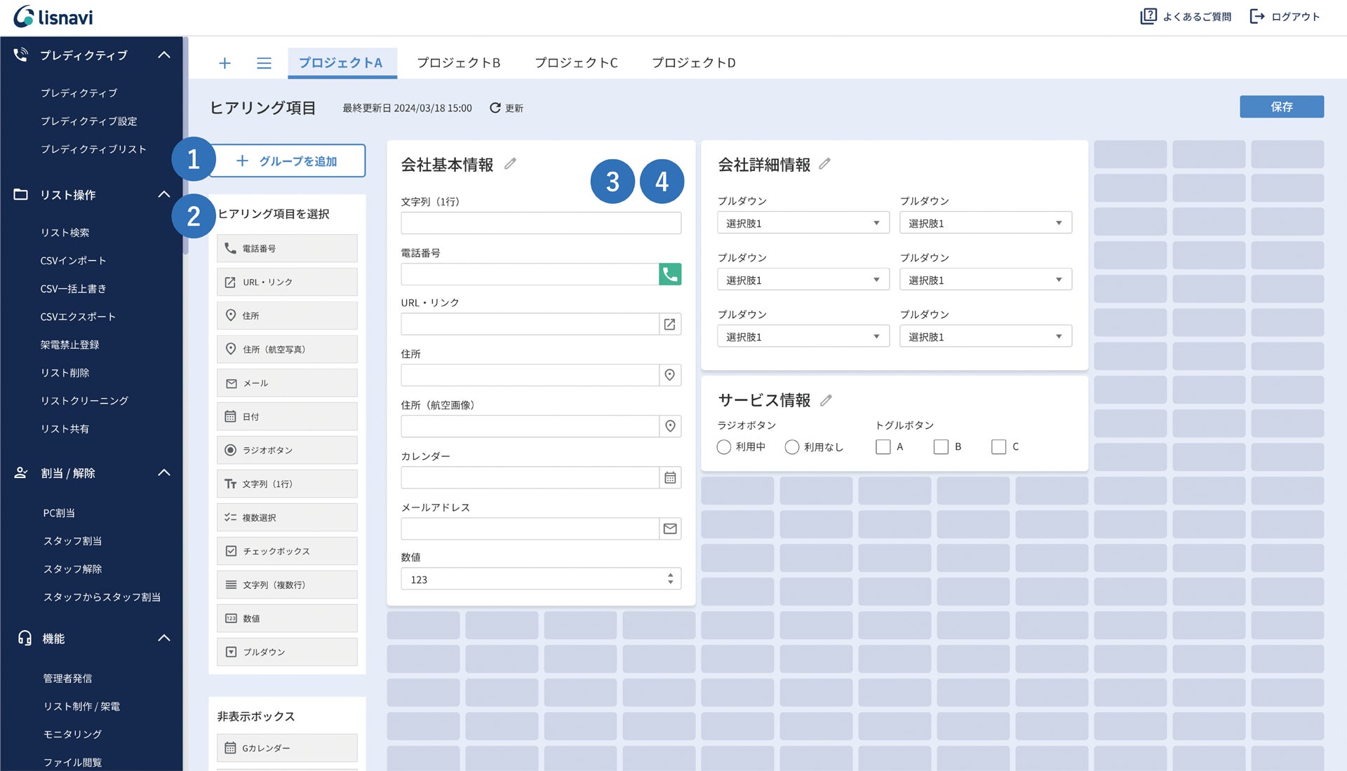 複数の商材を取り扱う際、ヒアリング項目やステータスを商材別にカスタマイズ可能。全13種類の項目を自由に組み合わせて、オリジナルのヒアリングシートを作成し、発信業務以外にかかる作業時間を大幅に削減できます。