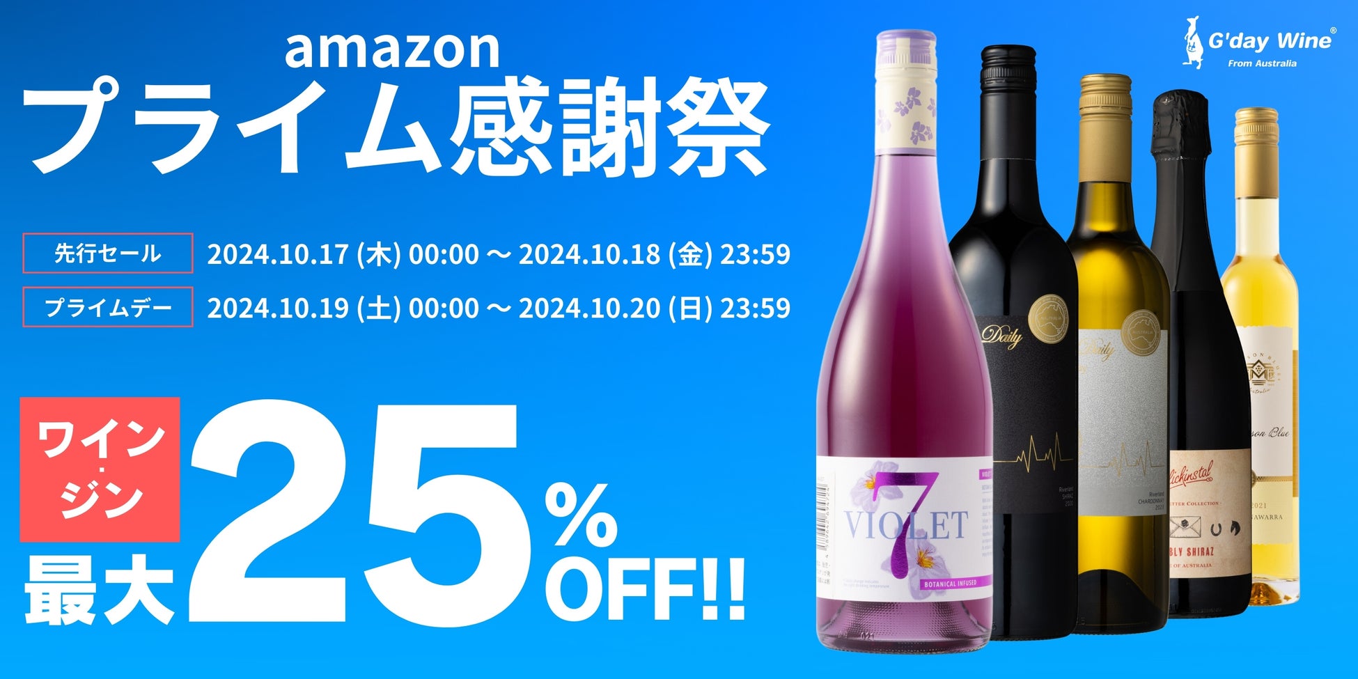オーストラリアのワイン・ジンを専門に輸入販売するブランド『G'day Wine(R)』は、2024年10月17日(木)~ 10月20日(日)に開催される「Amazonプライム感謝祭先行セール」と「Amazonプライム感謝祭」にて、ギフトに最適なオーストラリアワインやクラフトジンをいつもよりお手頃な価格で販売します。