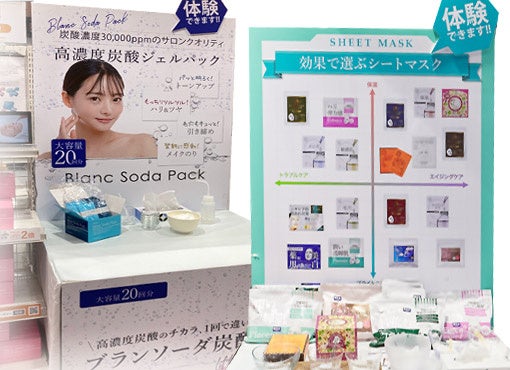各種シートマスクの違いを比べられるコーナーもございます。様々なタイプのシートマスクをぜひご自身でお確かめください。