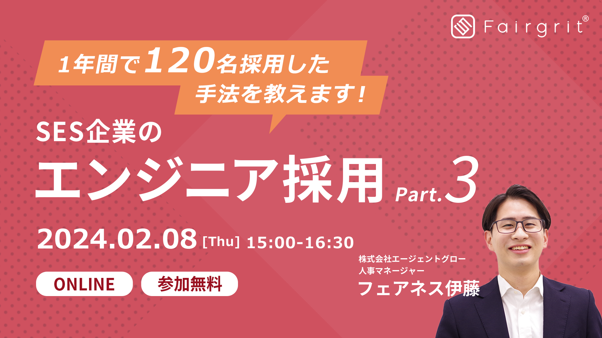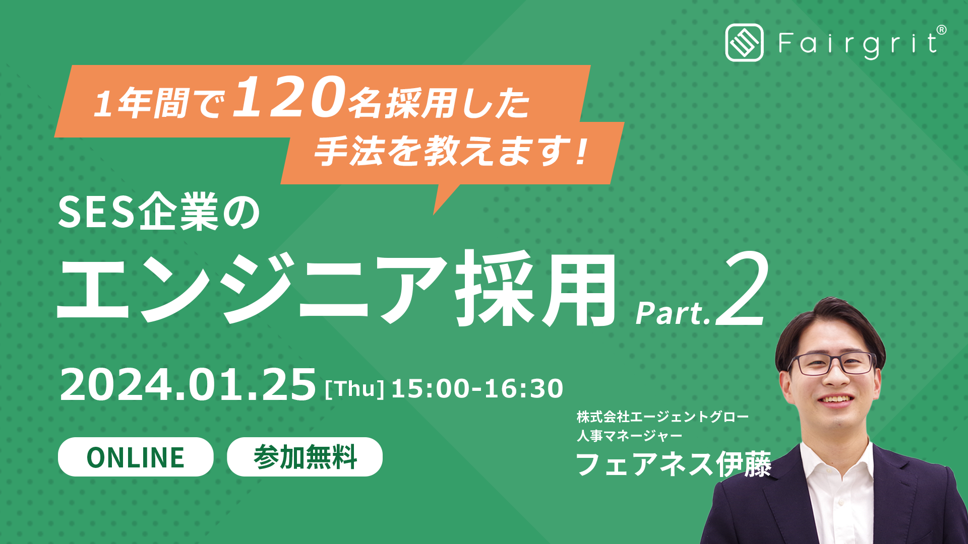 2024年1月度&2月度は「SES企業のエンジニア採用 〜1年間で120名採用した手法を教えます〜Part.1 Part.2 Part.3」をお届けいたします!