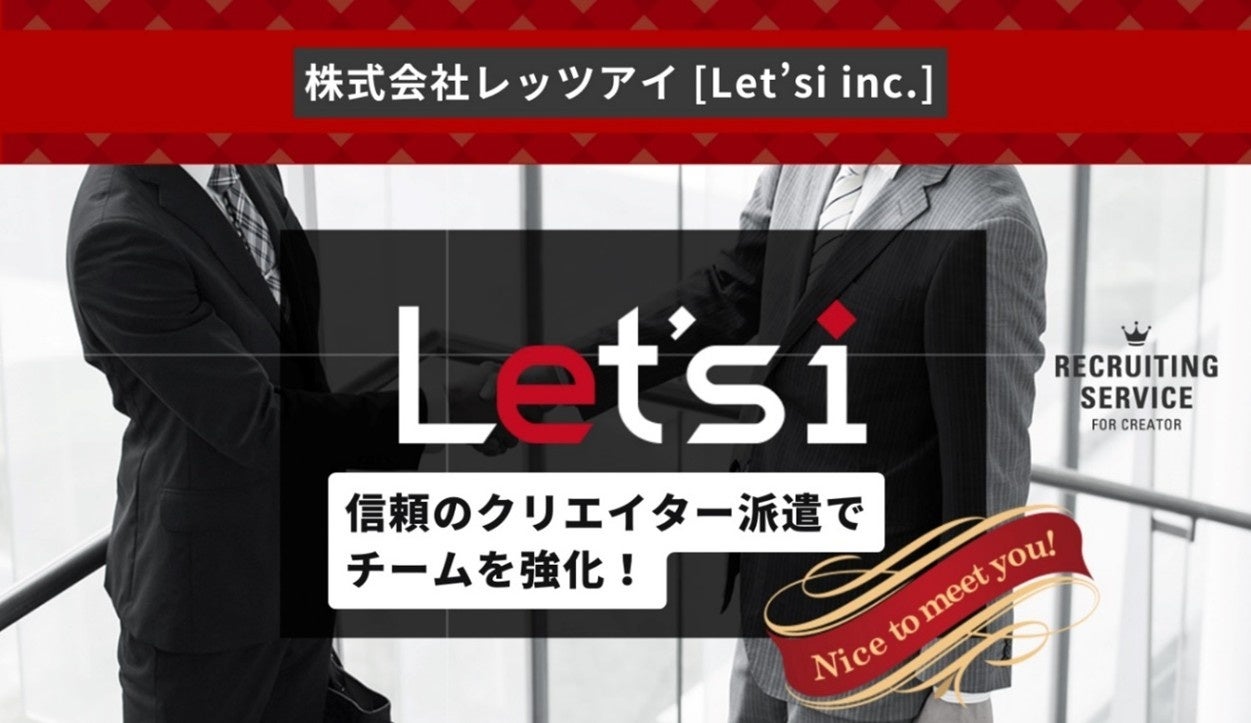 レッツアイでは、Web領域における市場の人材ニーズを満たすべく、関西圏のクリエイターの転職をサポートする人材派遣事業/人材紹介事業を中心に展開、Web領域におけるクリエイティブ人材の集客力に強みを持ち、豊富な人材データベースを有しています。