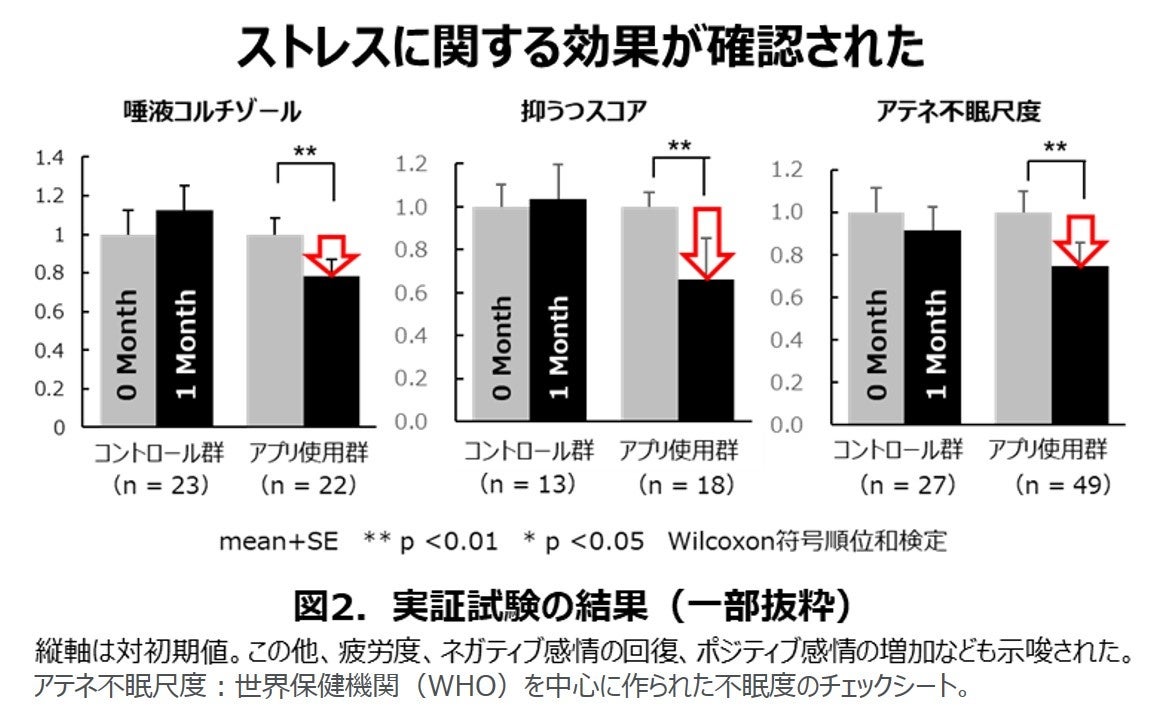 メンタル不調を未然に防ぐには、日常的にストレス状態を把握し早めに対応することが大切です。本研究では、日常的に使えるストレスマネジメントツールとするため、技術・知見を多くの方が保有するスマートフォンのアプリに実装しました。本アプリは、「ウェルネステック」として、さまざまな方のWell-beingに貢献できると考えています。