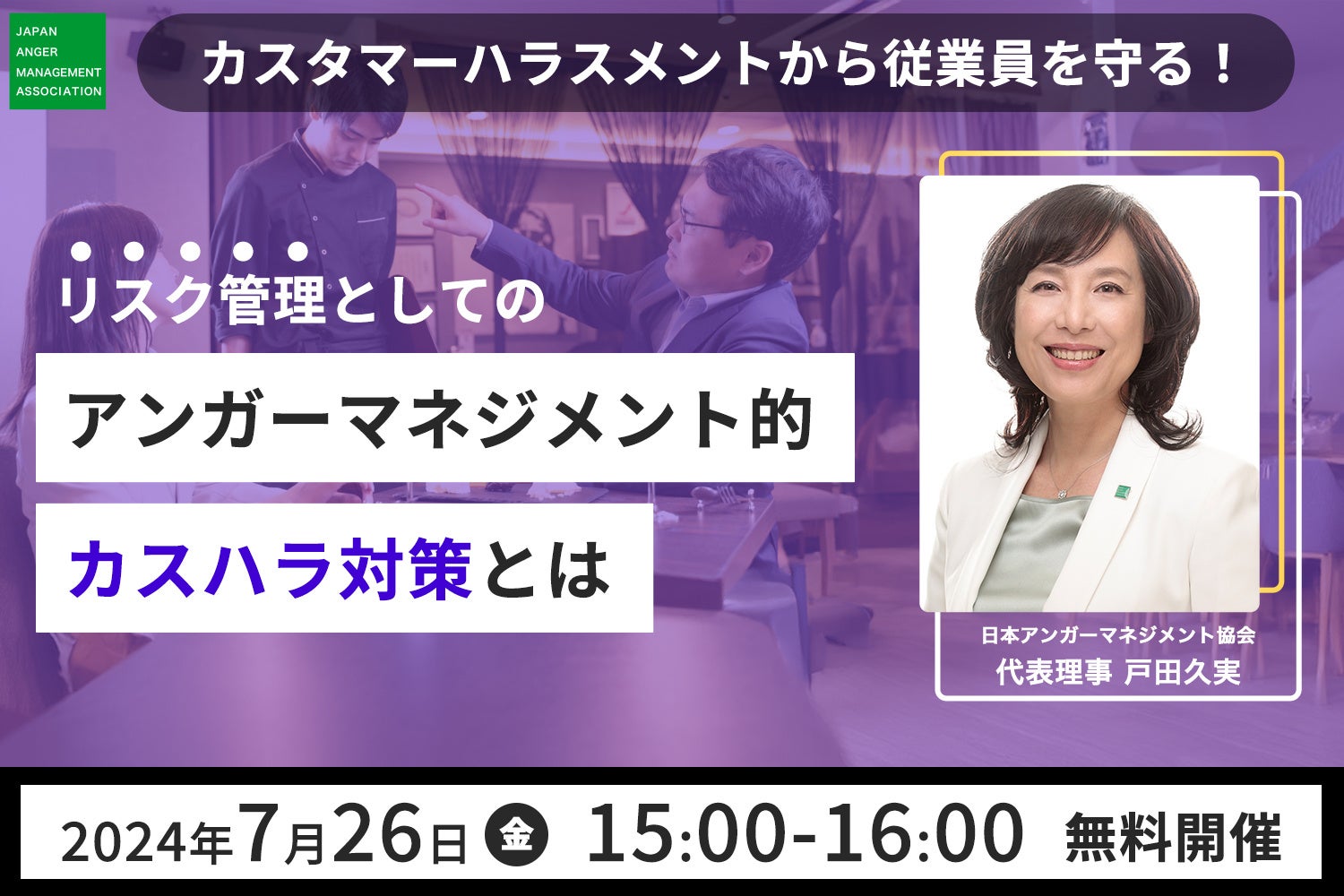 7月26日(金)、当会代表理事 戸田久実登壇「カスタマーハラスメントから従業員を守る!今こそ企業が取り組むべき、リスク管理としてのアンガーマネジメント的“カスハラ”対策とは」オンラインセミナー開催!