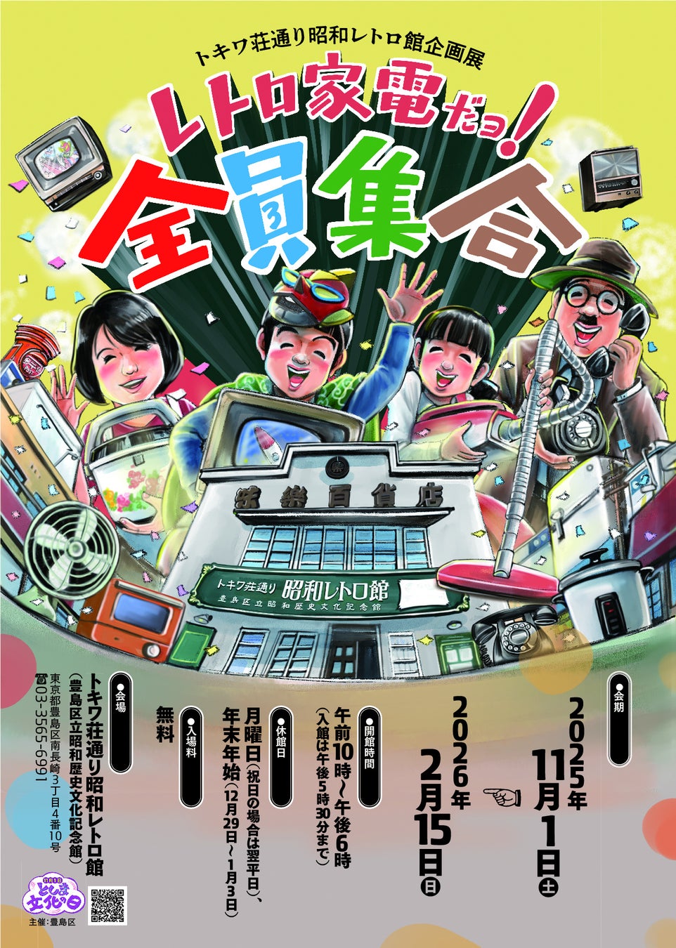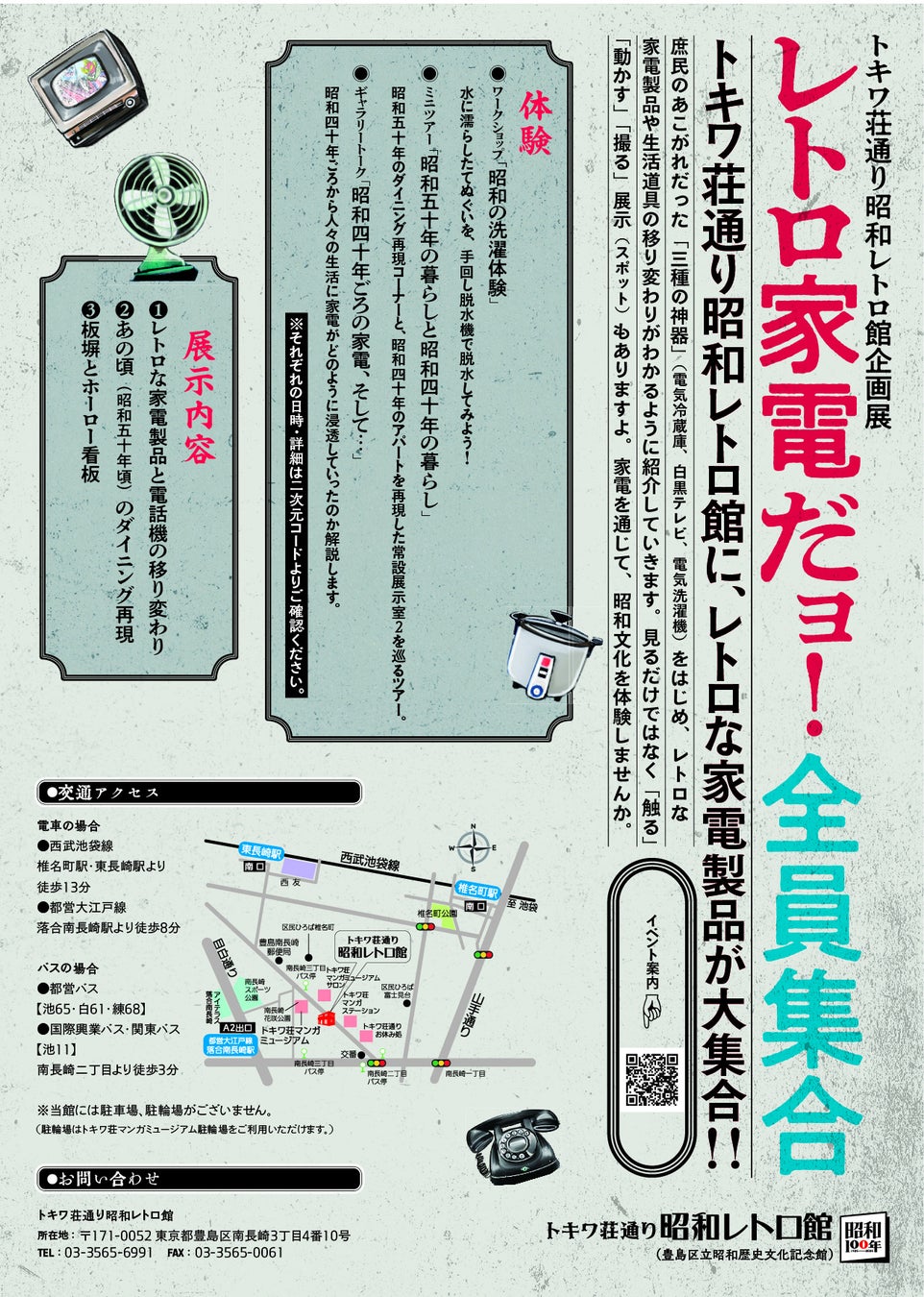 公益財団法人としま未来文化財団(所在地:東京都豊島区、理事長:合場直人)が運営するトキワ荘通り昭和レトロ館(豊島区立昭和歴史文化記念館)では、現在、企画展「レトロ家電だョ!全員集合」を開催しています。
