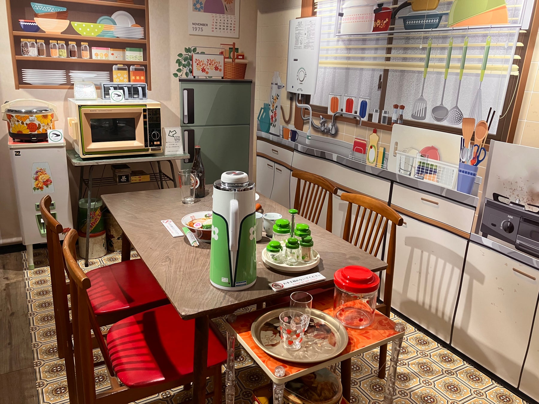 昭和50年頃のダイニングの再現や、時代や世相を反映した個性的なホーロー看板など、見るだけではなく、「触る」「動かす」「撮る」展示(スポット)を設けています。また「家電×豊島区」の企画展ということで、豊島区に本社を置くビックカメラとのコラボコーナーもご用意。