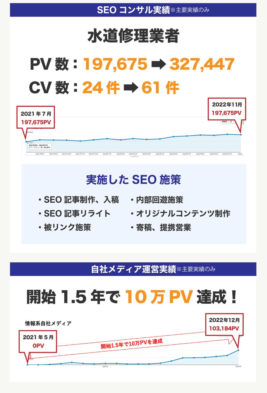 株式会社トビバコでは、累計100以上の企業に対しSEO対策を提供してきた実績があり、その経験を活かしクライアントのSEO強化を支援します。まずは初回無料記事をお試しいただき、当社の品質とサービスを実感してください。