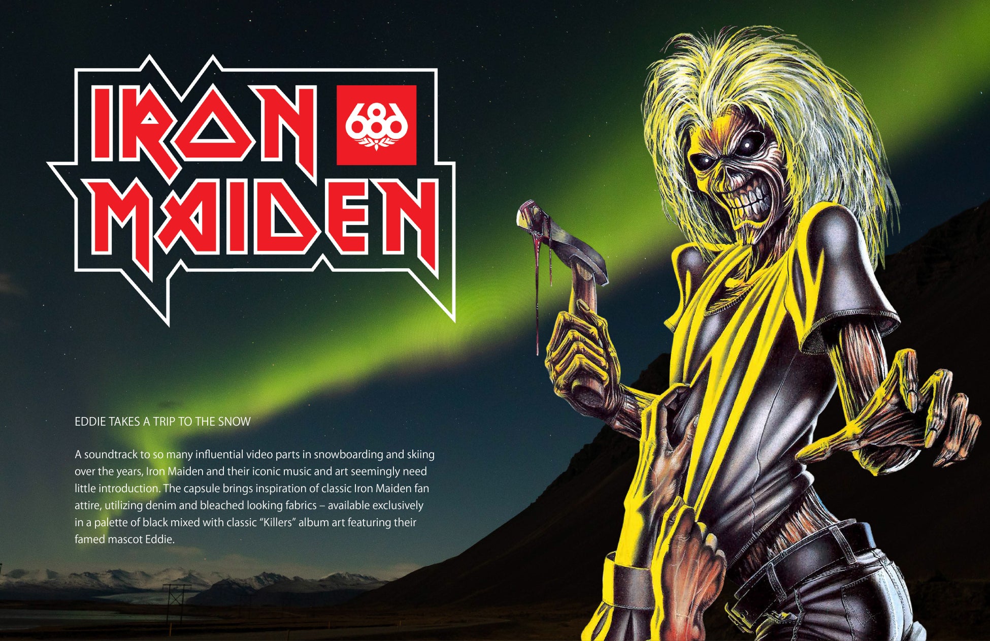 世界的ヘヴィメタル・バンド「アイアン・メイデン」とスノーウェアブランド「686」が、待望のコラボレーションアイテムをリリースします。