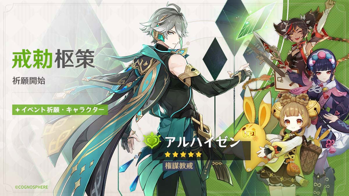 - ★5「アルハイゼン(草)」、★5「魈(風)」、★4「ヨォーヨ(草)」がイベント祈願に登場!