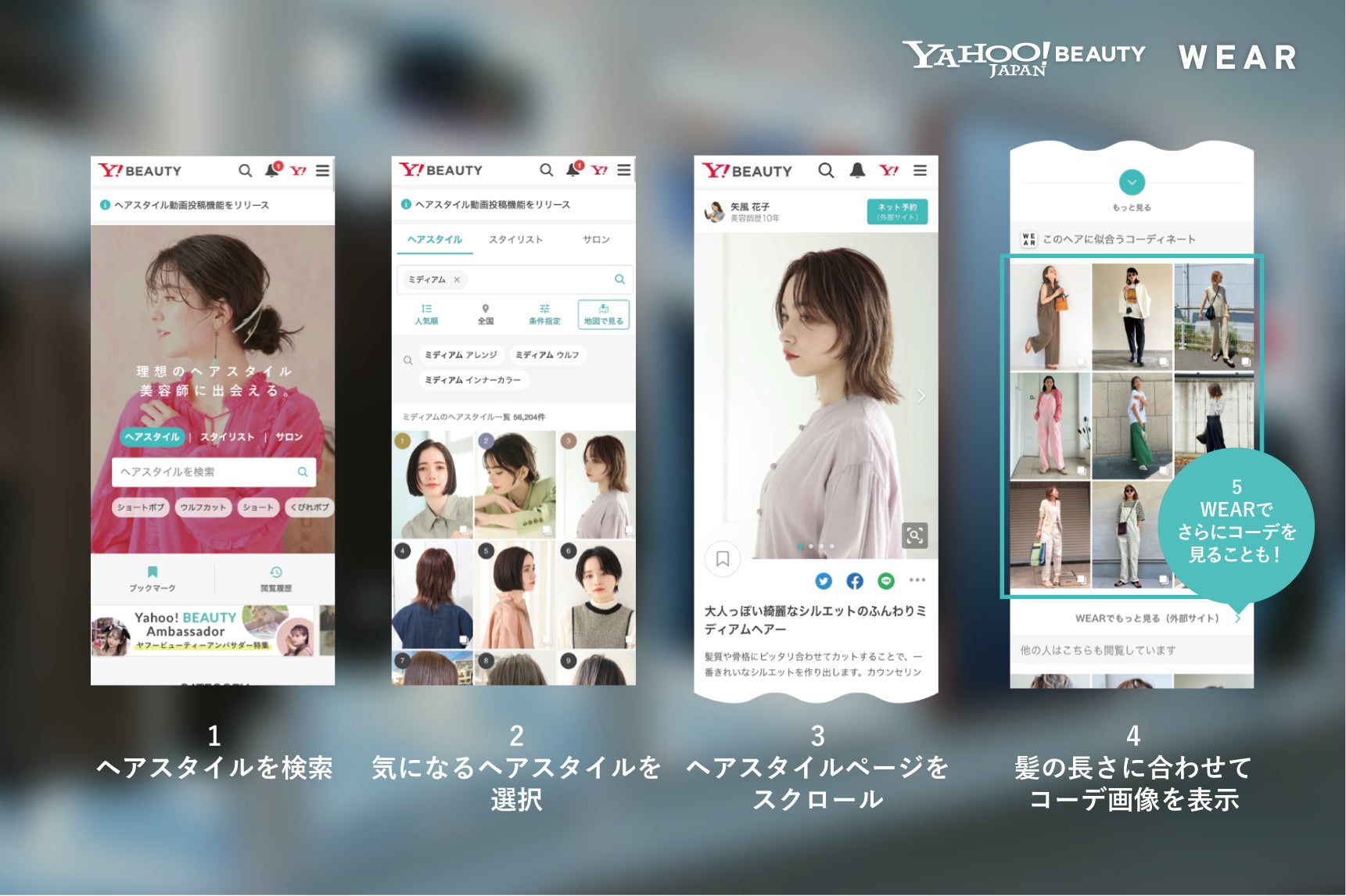 Yahoo! BEAUTY、WEARと連携し、ヘアスタイル探しの際にそれぞれの髪の長さに合わせてWEARユーザーのファッションコーディネート画像を表示