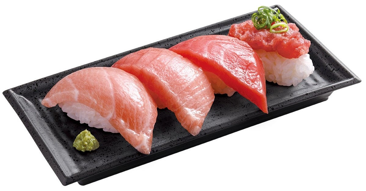 「はま寿司の本まぐろ祭り」では、“マグロの王様”や“黒いダイヤ”とも呼ばれる「本鮪」の様々なおいしさをお楽しみいただけます。三陸沖で獲れた天然の本鮪たたきをのせた「三陸産天然本鮪たたきつつみ」、きめ細かく濃厚な旨みの「地中海産本鮪上赤身」、程よく脂がのった上品な味わいの「地中海産本鮪中とろ」、口に含んだ瞬間からとろけるような食感の「地中海産大切り本鮪大とろ」、上記4種を盛り合わせた「本鮪づくし」を販売します。