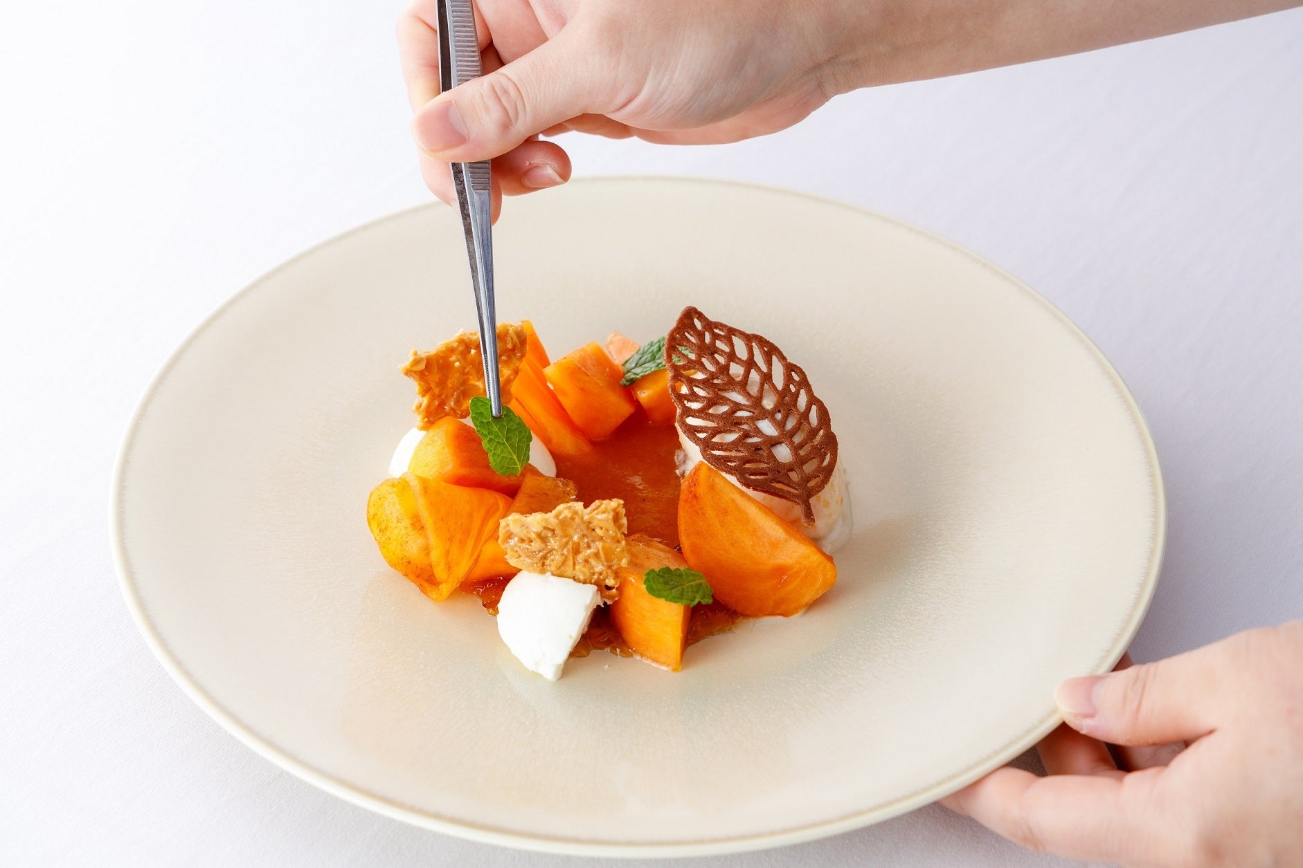 【ひらまつレストラン】甘柿の王様「富有柿」を使った今しか味わえないデザートが登場 ~ 福岡・天神「リストランテKubotsu」の11月限定“至高の柿スイーツ”~