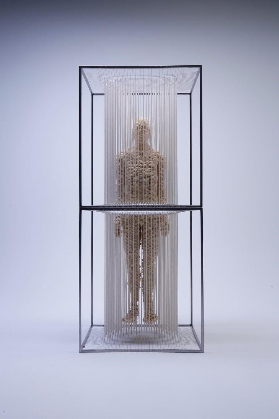 黒瀧は、繊維が交差することで立体的な構造が生まれる織物の造形に着眼を得て、手作業を通じた、経糸と緯糸の組み合わせを用いた、立体作品を制作しています。