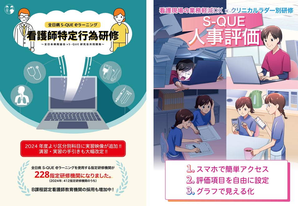 「全日病S-QUE eラーニング看護師特定行為研修」「S-QUE人事評価」
