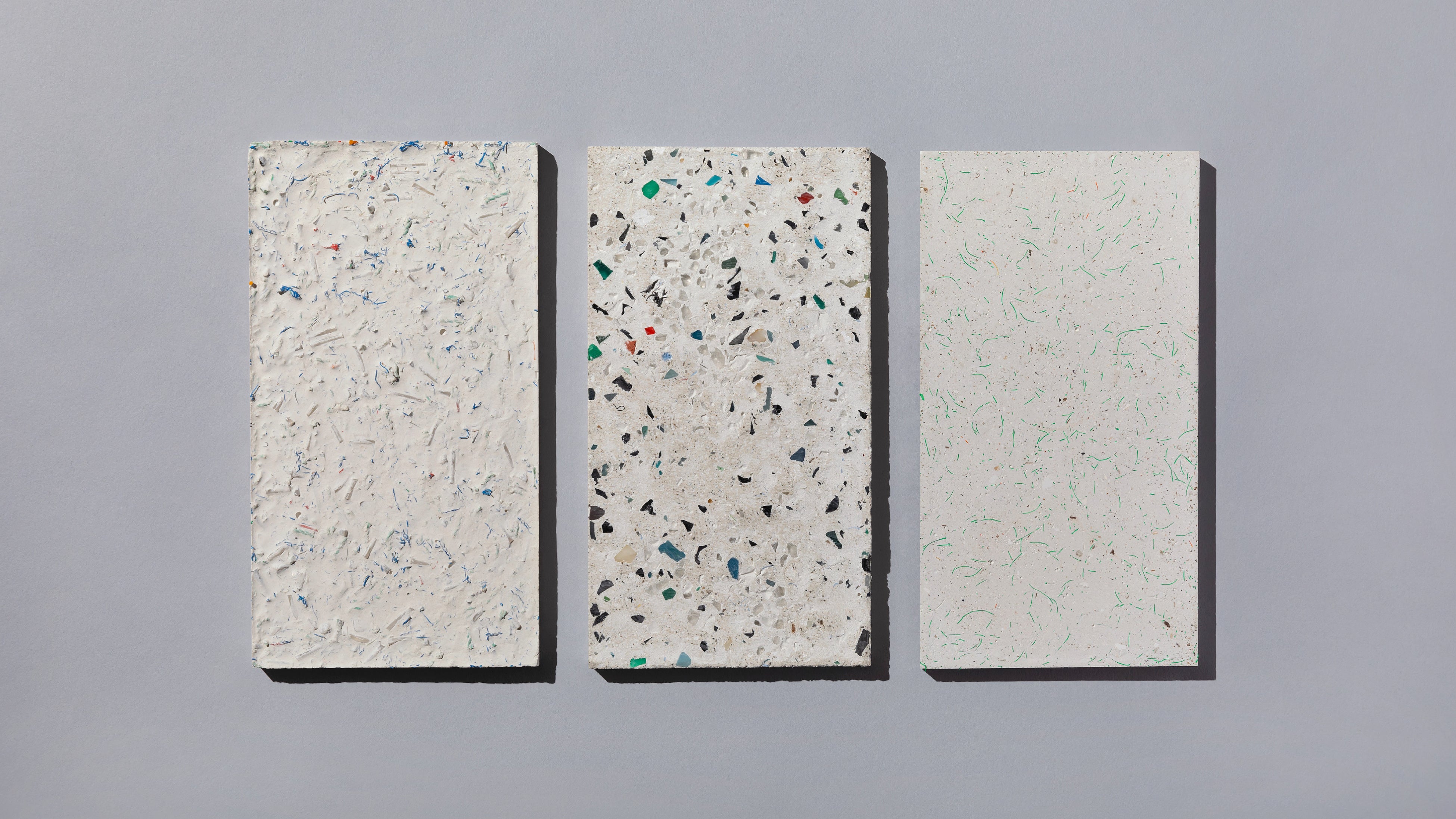 amuca®タイルは、環境への配慮、美しいデザイン性、そして素材に込められたストーリー性を兼ね備えた、廃漁具由来のデザインセメントタイルです。原料には、リサイクルが難しい漁網やブイ、ロープなどの廃漁具をはじめ、漁具以外のさまざまな廃材も活用することができます。また、焼成工程を伴わない製造方法を採用しており、一般的な焼成タイルと比べて製造時のCO2排出量を抑えて作られています。