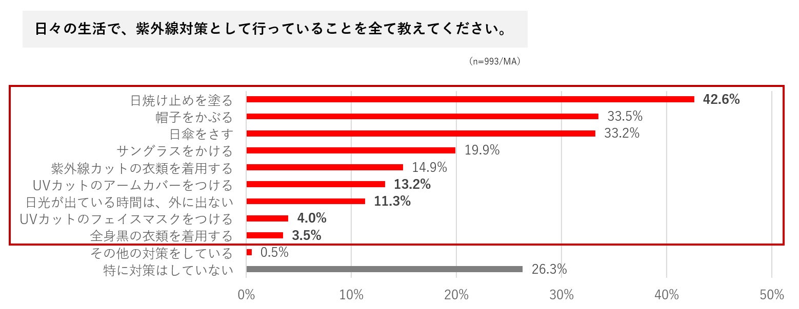 7割以上(73.6%)がビタミンDを阻害する紫外線対策を実施