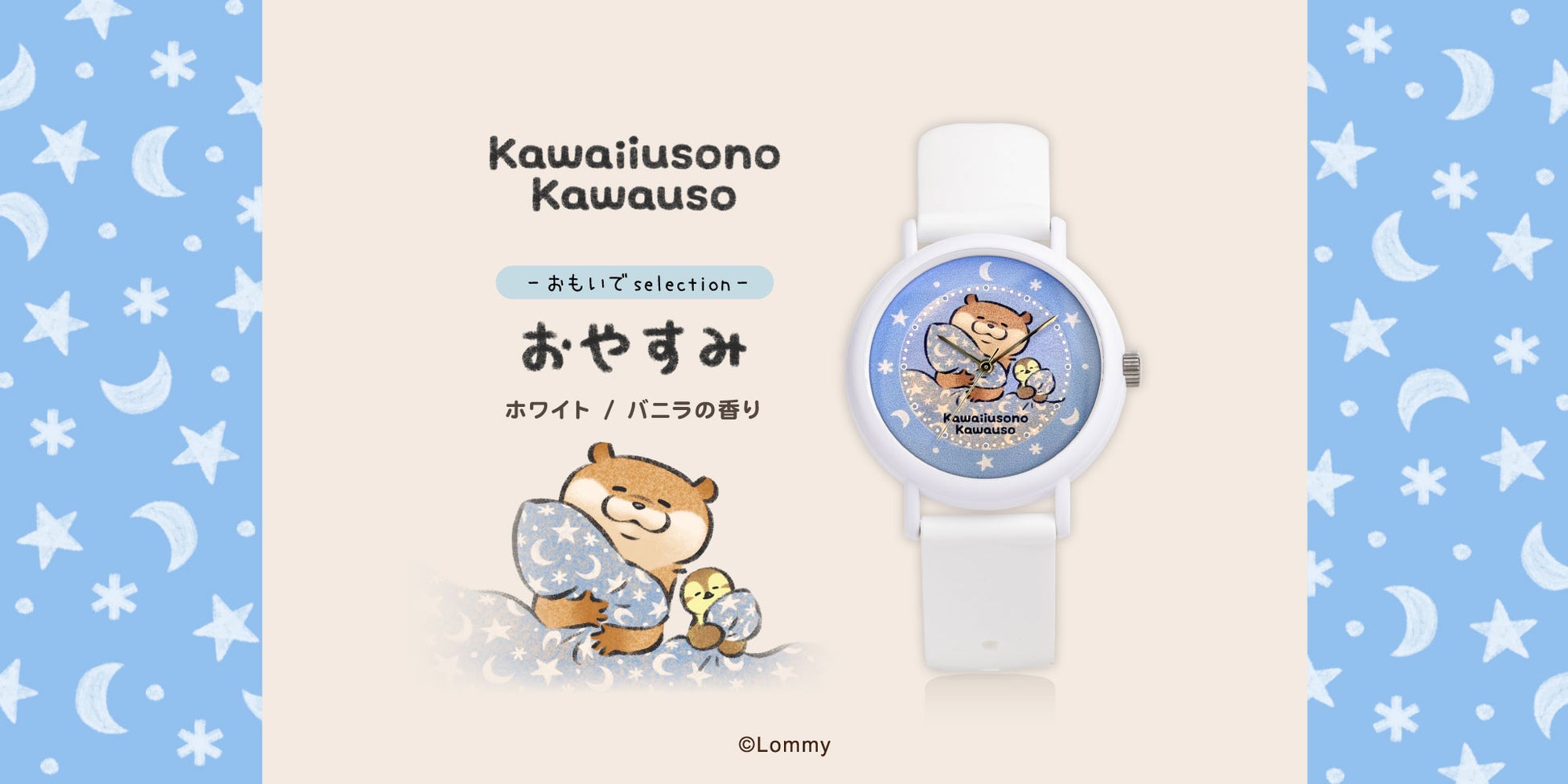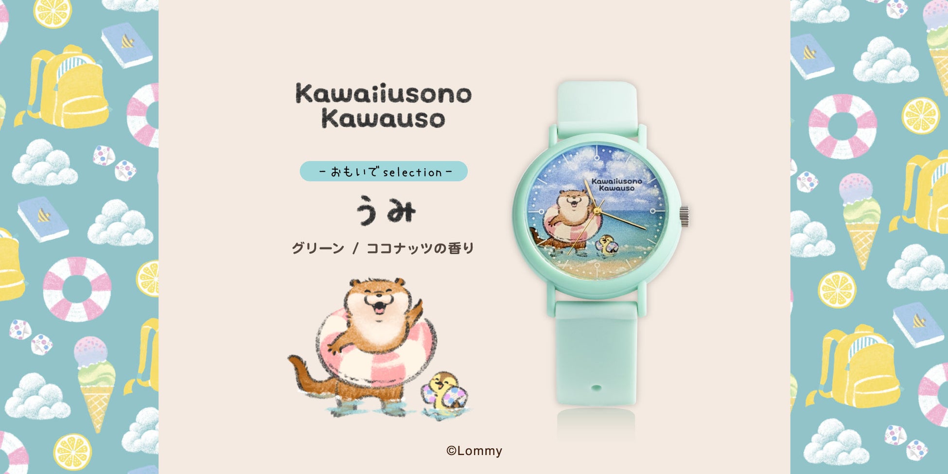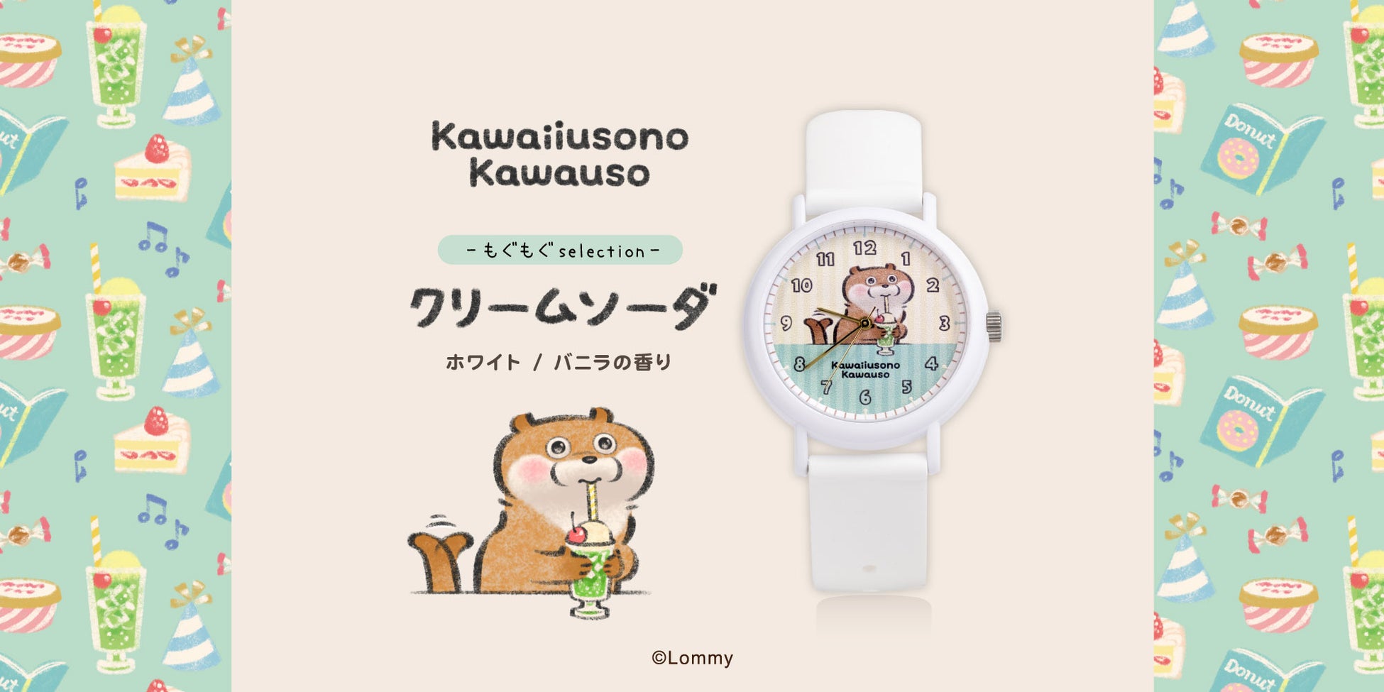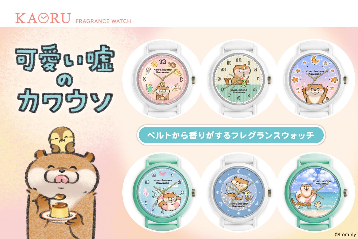 めぐる四季を楽しむ姿をあたたかなタッチで描く、SNSを中心に人気を広げるキャラクター「可愛い嘘のカワウソ(原作:Lommy)」。食いしん坊なカワウソの姿にインスパイアされ、時計メーカー株式会社マルゼキ(本社・東京都文京区)の人気シリーズ「フレグランスウォッチKAORU」とコラボレーションが実現しました。