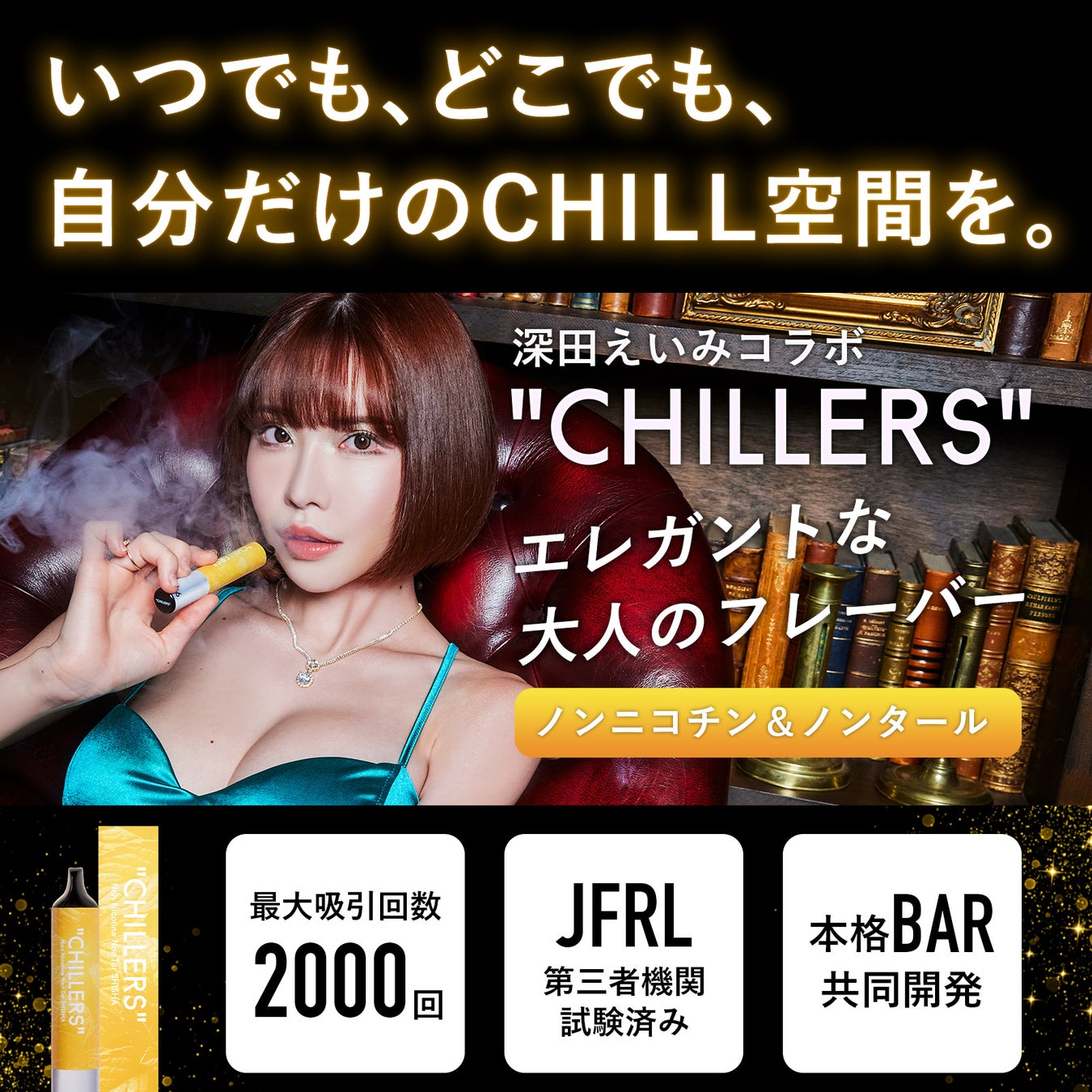 【いつでもどこでも、自分だけのCHILL空間を】をコンセプトに、てんちむがプロデュースした革新的な電子シーシャブランド「CHILLERS」。