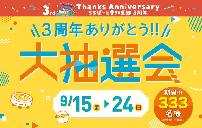 【三井ショッピングパーク ららぽーと愛知東郷】開業3周年の“感謝”を込めた特別な10日間こどもから大人まで楽しめるイベントを開催!「3rd Thanks Anniversary」