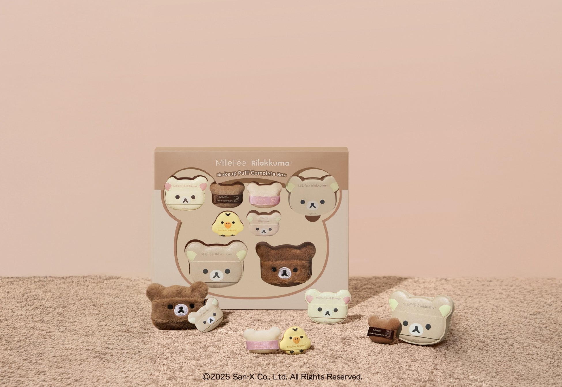 リラックマ、コリラックマ、キイロイトリ、チャイロイコグマの愛らしいフェイスパフで、キャラクターの個性をそのまま形にしたデザインで、見た目にも癒されるアイテムです。