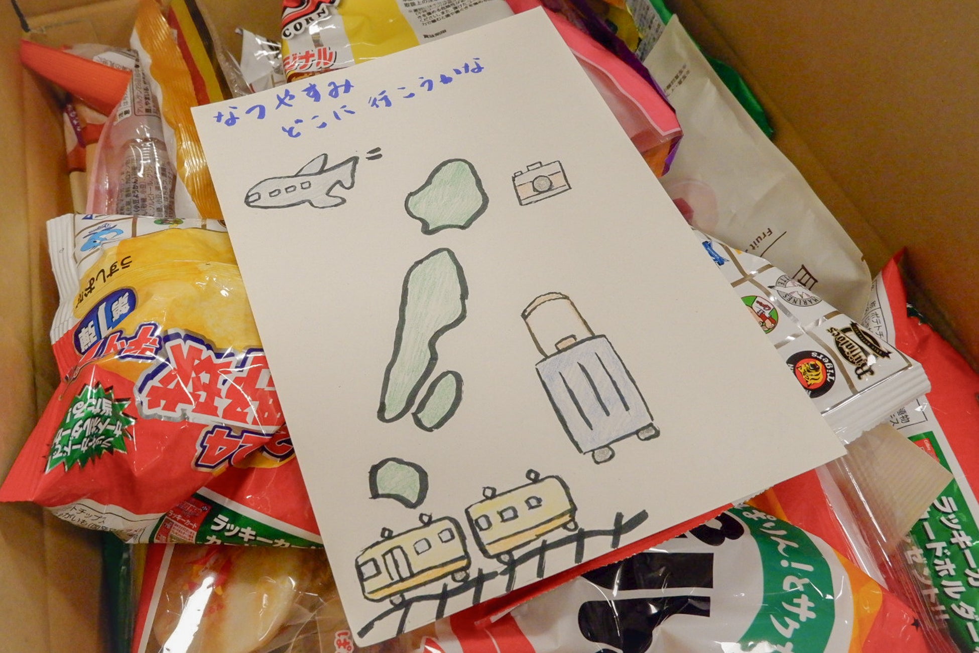 作業内容は賞味期限の確認や箱への梱包詰め、手書きメッセージの作成などです。